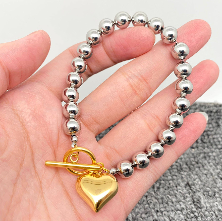 Heart Charm 8MM Beaded Bracelet