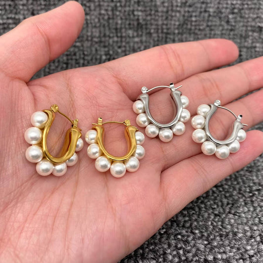 Pearl Resin Half Hoop Earrings
