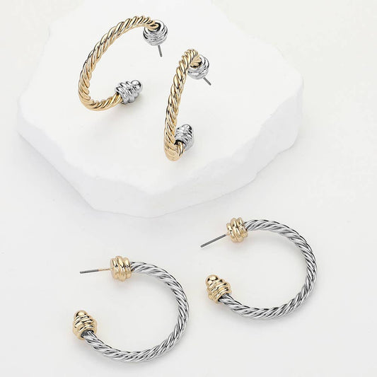 Two Tone Rope Hoop Earrings
