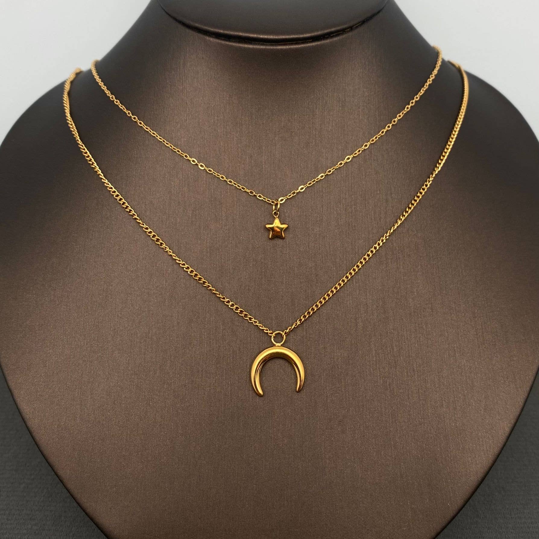 Moon and Star Double Necklace